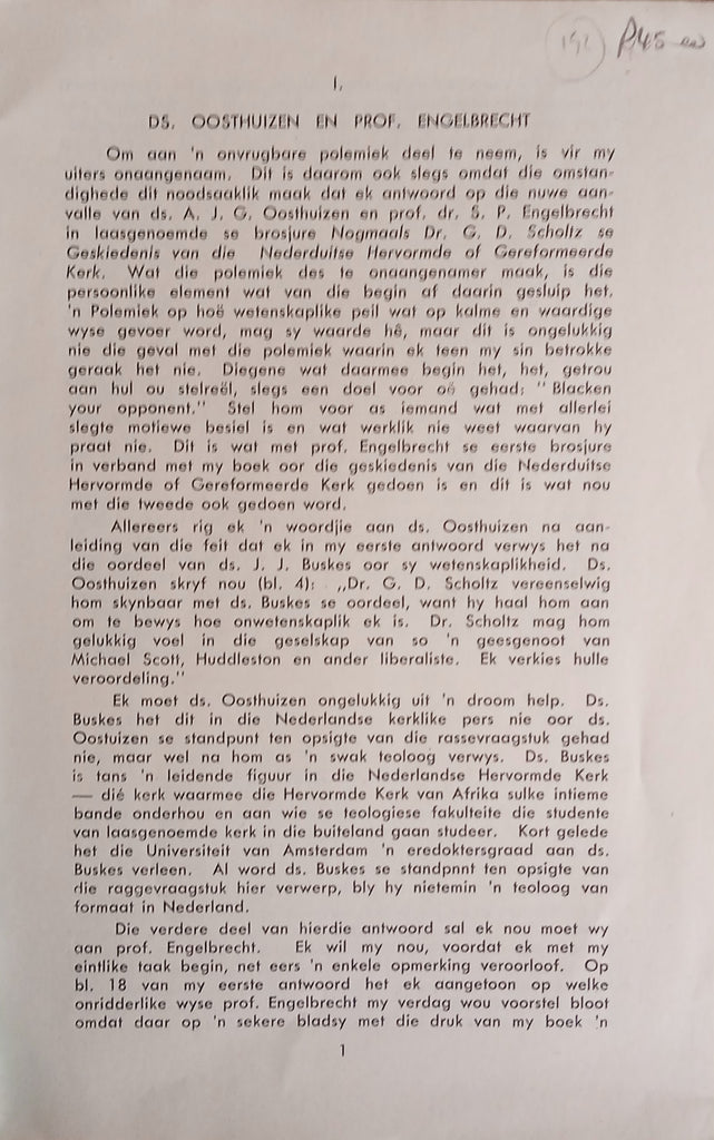 Title: My Verdere Antwoord aan Prof. Dr. S.P. Engelbrecht