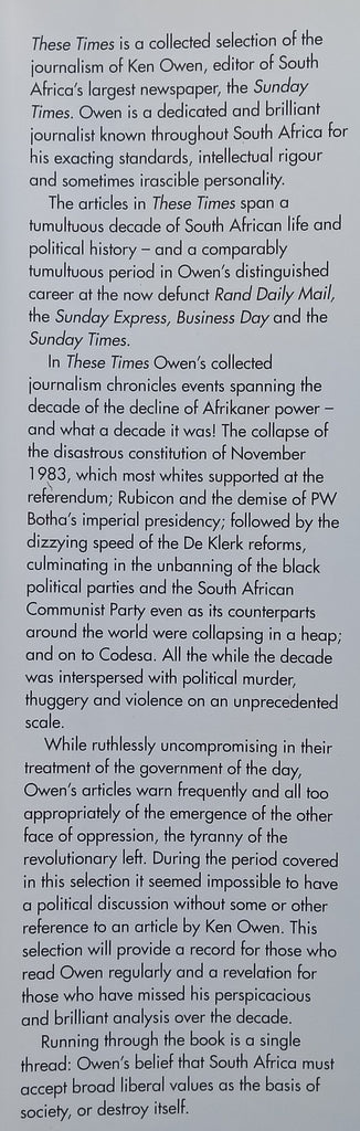 These Times: A Decade of South African Politics | Ken Owen