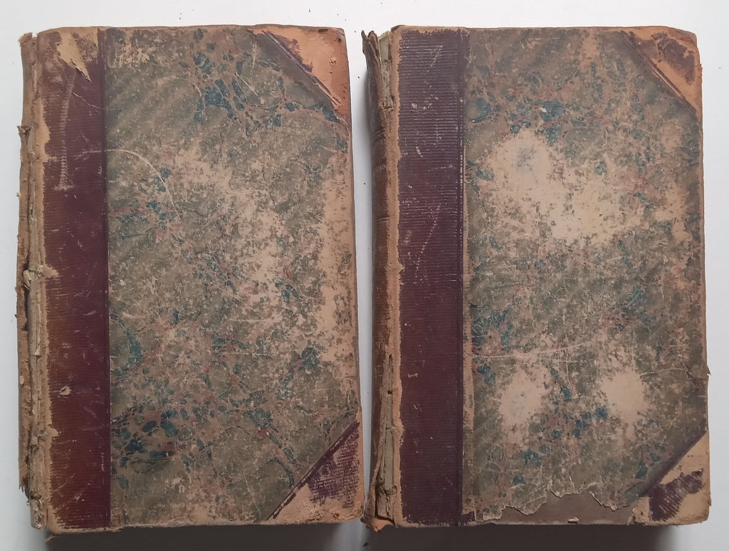 Condition: Fair. Please see photos. Wear to boards and spines, front board of vol. 1 has come loose, other boards feel loose, old newspaper clipping and previous owner’s bookplate on front pastedown of vol. 1, previous owner’s bookplate on front pastedown of vol. 2. Text overall clean, despite some foxing. Some offsetting to pages facing plates. Plates overall clean. Title page missing from vol. 1. Sold as is. A good set for rebinding.