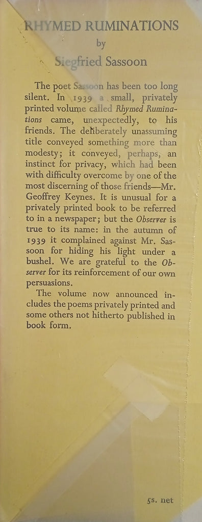 Title: Rhymed Ruminations, Poems by Siegfried Sassoon