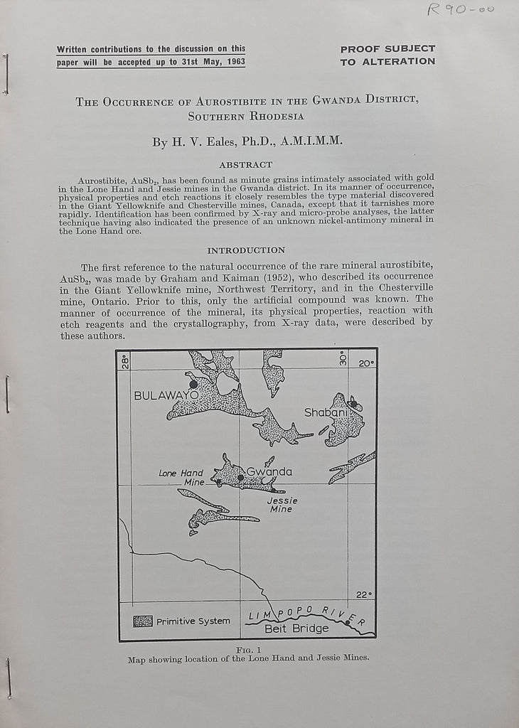 The Occurrence of Aurostibite in the Gwanda District, Southern Rhodesia (Proof) | H. V. Vales
