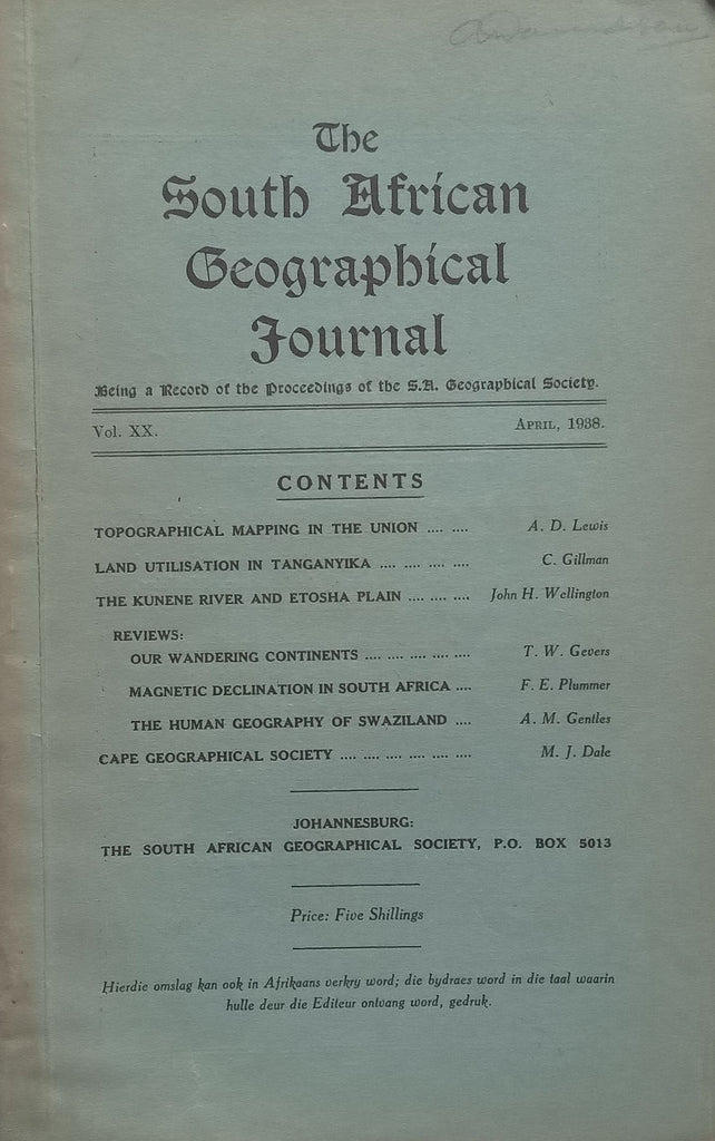 The South African Geographical Journal (Vol. 20, April 1938)