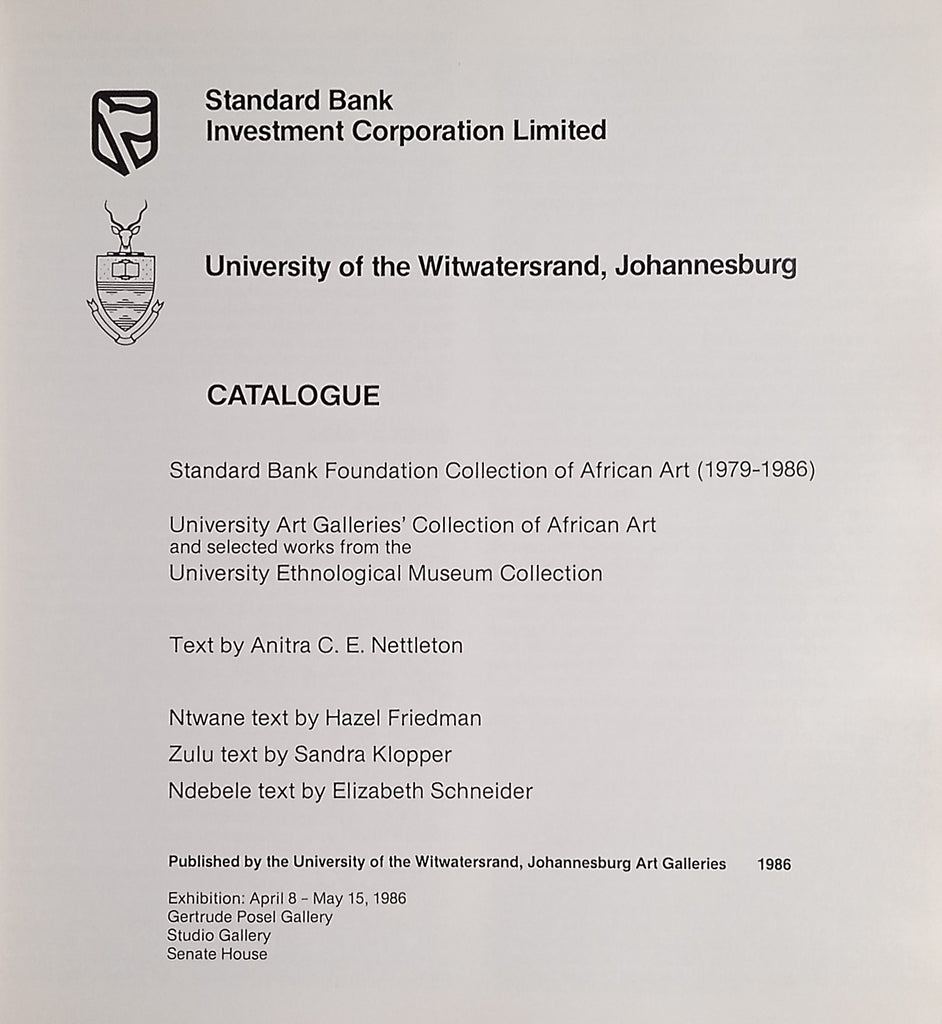 Publisher: Wits University Press and Johannesburg Art Galleries 1986