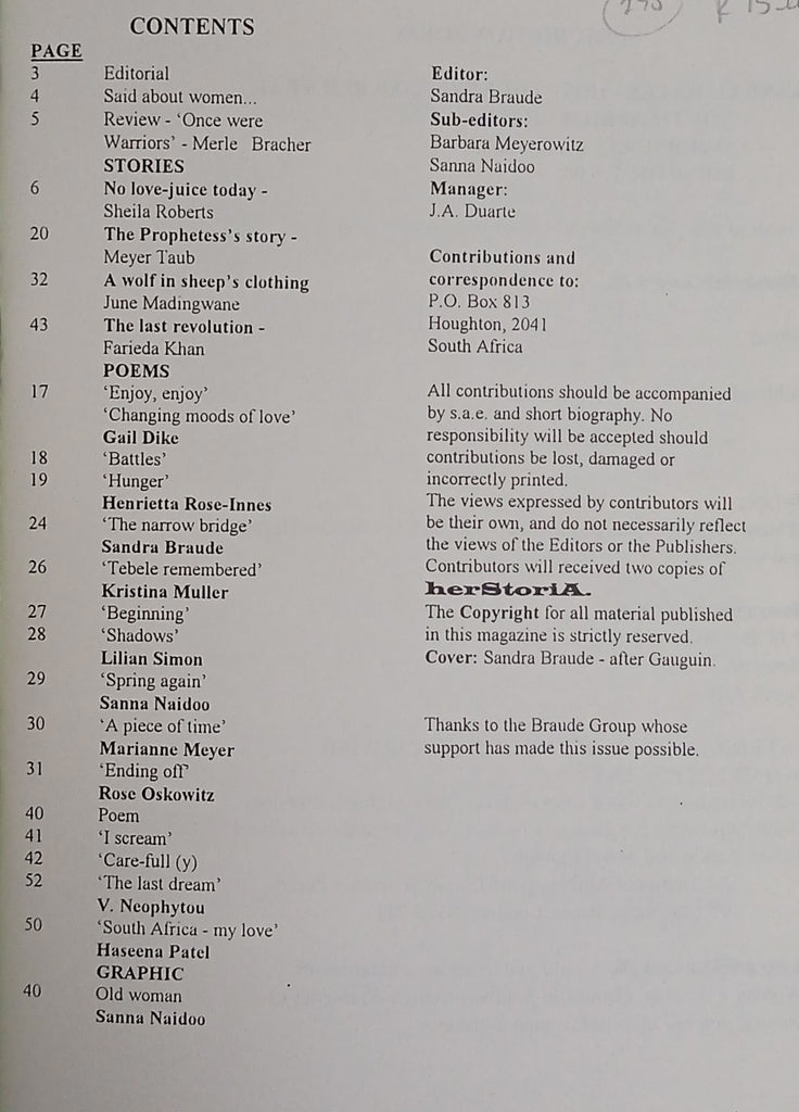 Title: Herstoria: South African Women's Journal Autumn 1995 Volume 1 No. 1