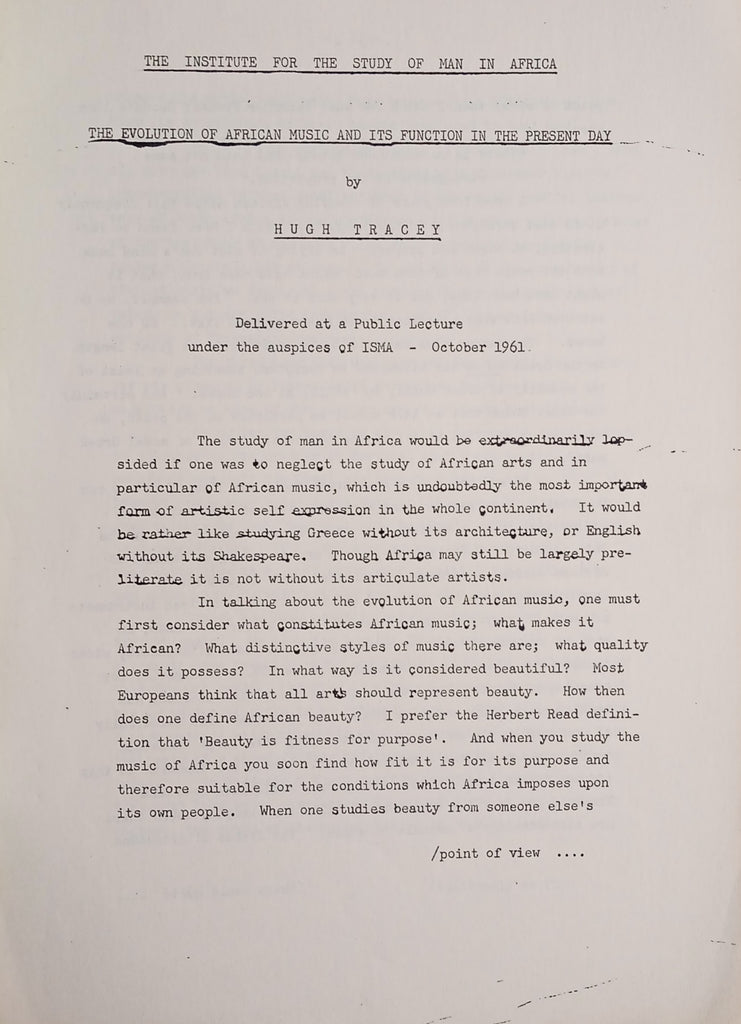 Title: The Evolution of African Music and Its Function in the Present Day, ISMA Papers, No.3, October 1961
