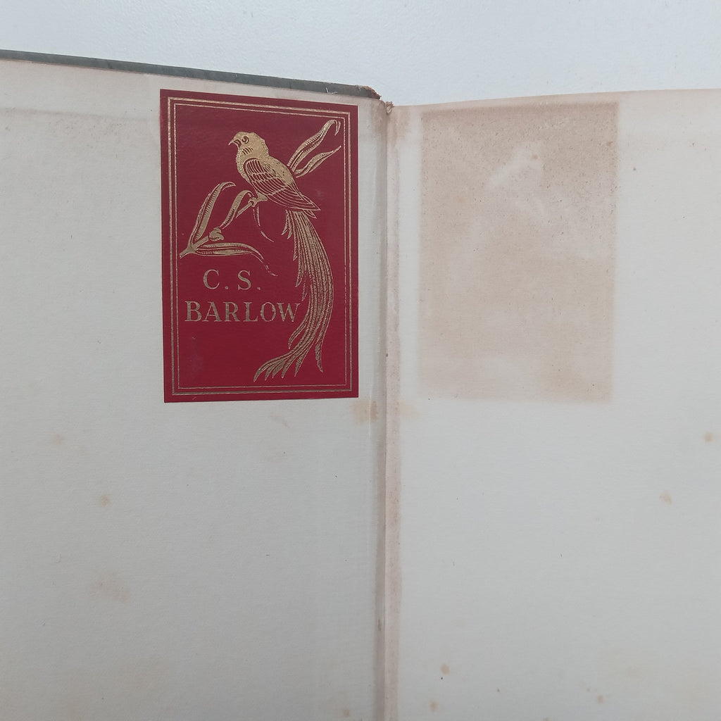 Condition: Good. Slight rubbing and spots of slight edgewear to boards, minor wear to corners of boards. Spine has come loose and has been reglued. Top of spine missing. Light foxing to endpapers, pastedowns, and first and last few pages. Some offsetting to front endpaper from facing bookplate. Text clean. Still well bound. Sold as is.