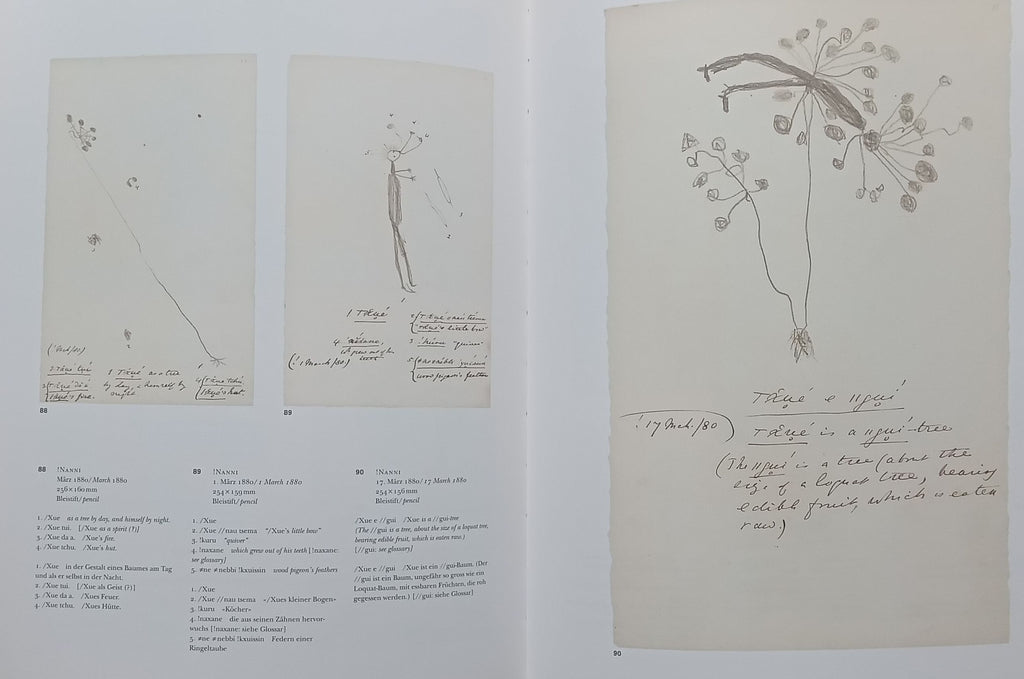 The San people have lived for thousands of years on the harsh plains of Kalahari in southern Africa and are the oldest indigenous people of the region. At the end of the nineteenth century, anthropologists Wilhelm Bleek and Lucy Lloyd travelled to southern Africa to document the San’s language and culture through their drawings. Now assembled for the first time in The Moon as Shoe, the drawings of the San come together in a striking visual essay of San history and culture.
