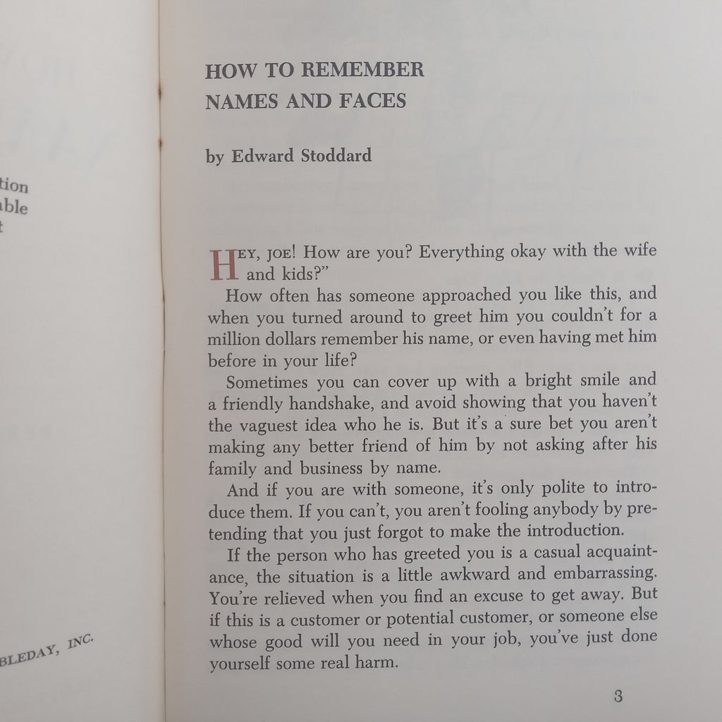 How to Remember Names and Faces (Nelson Doubleday Personal Success Program) | Edward Stoddard